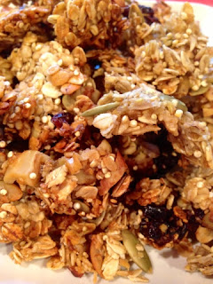 This morning, as I was adding ground flax seeds to my pancake batter, it hit me. Flax "eggs" could bind my granola and make pieces!